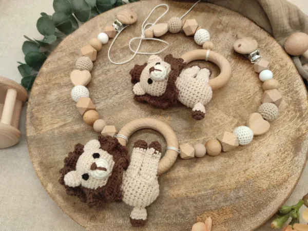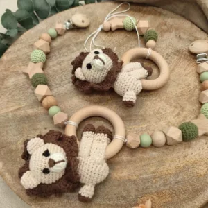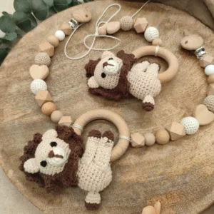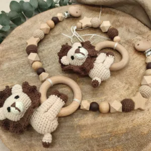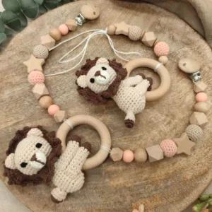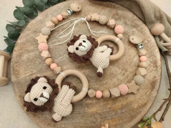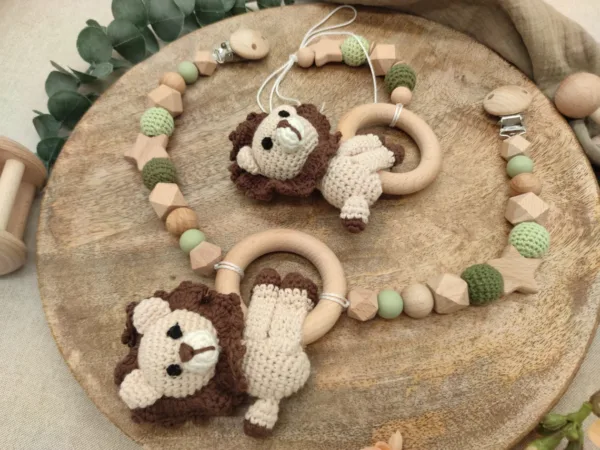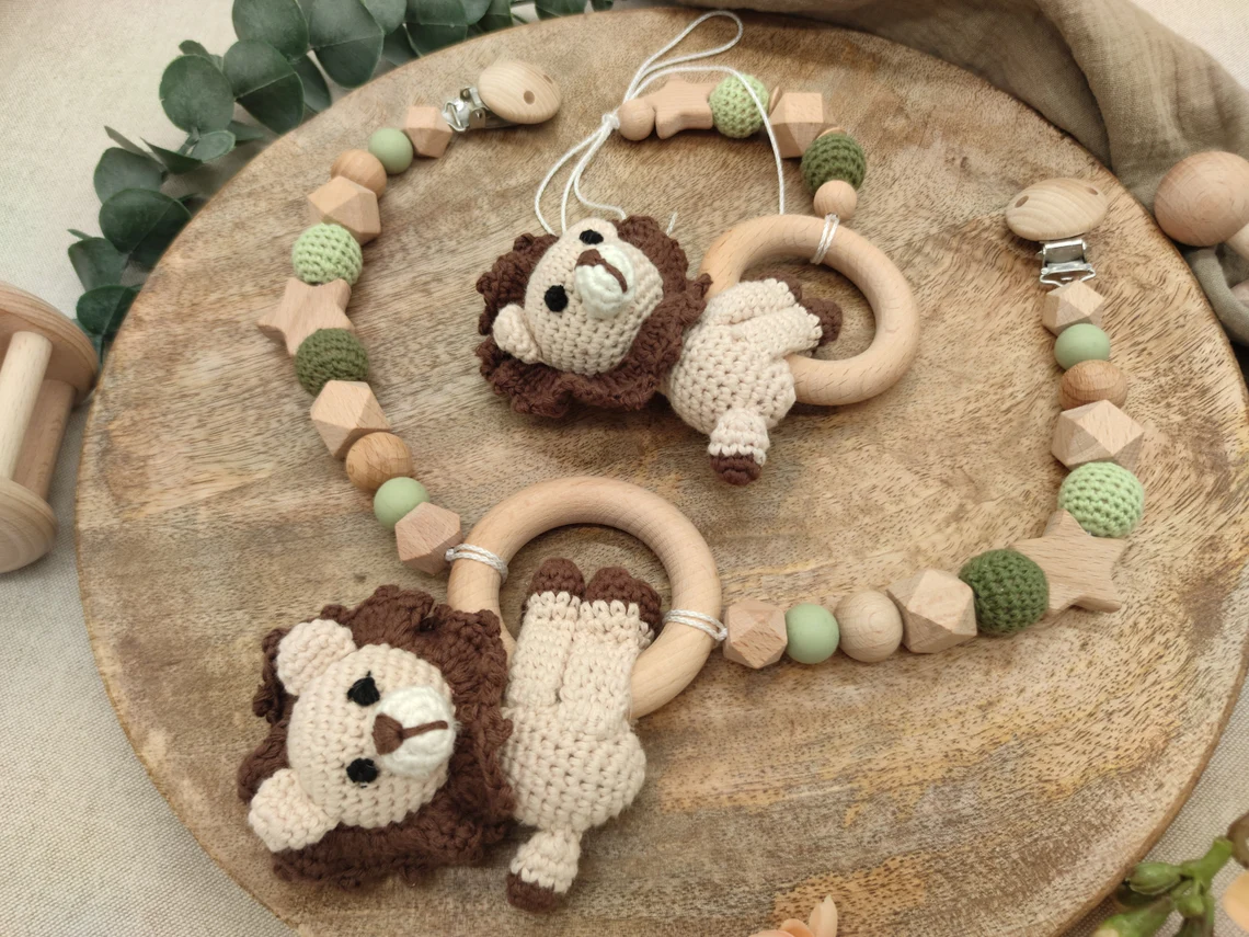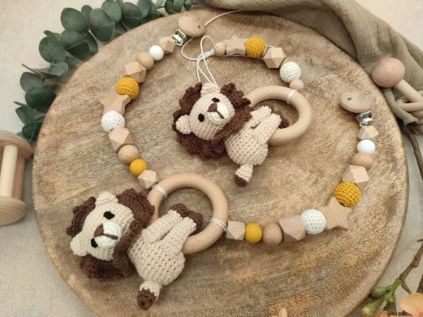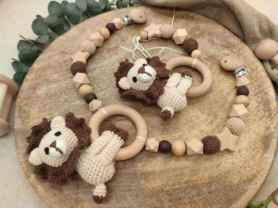 Geschenkbox „Löwe“ | Kinderwagenkette | Babyschalen Anhänger | gehäkelt