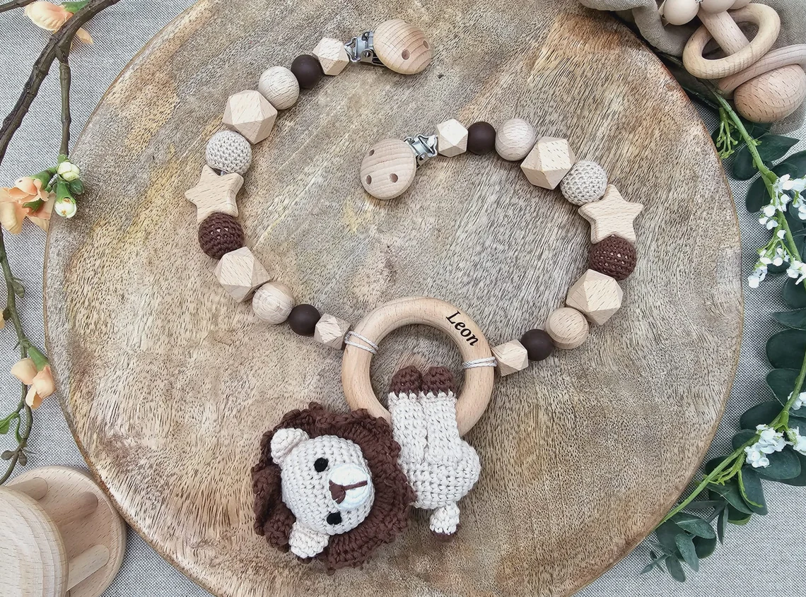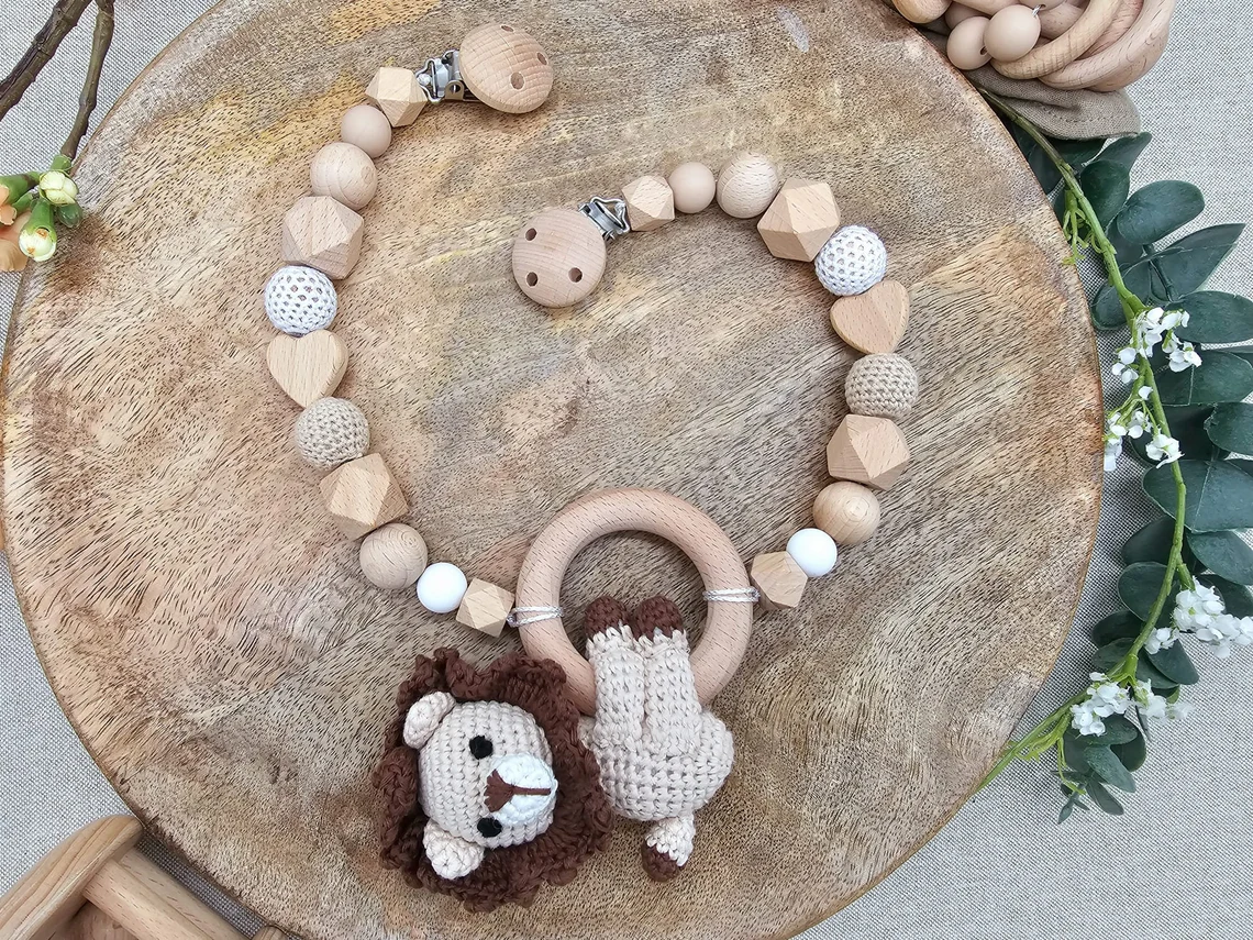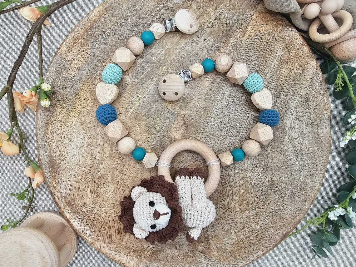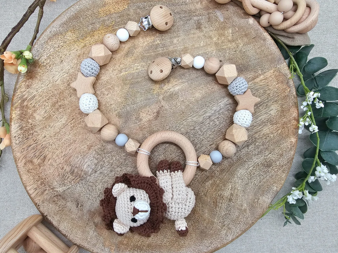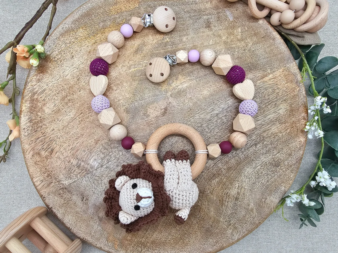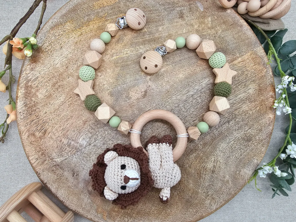 Im Kopf des Löwen ist eine Rassel eingearbeitet.