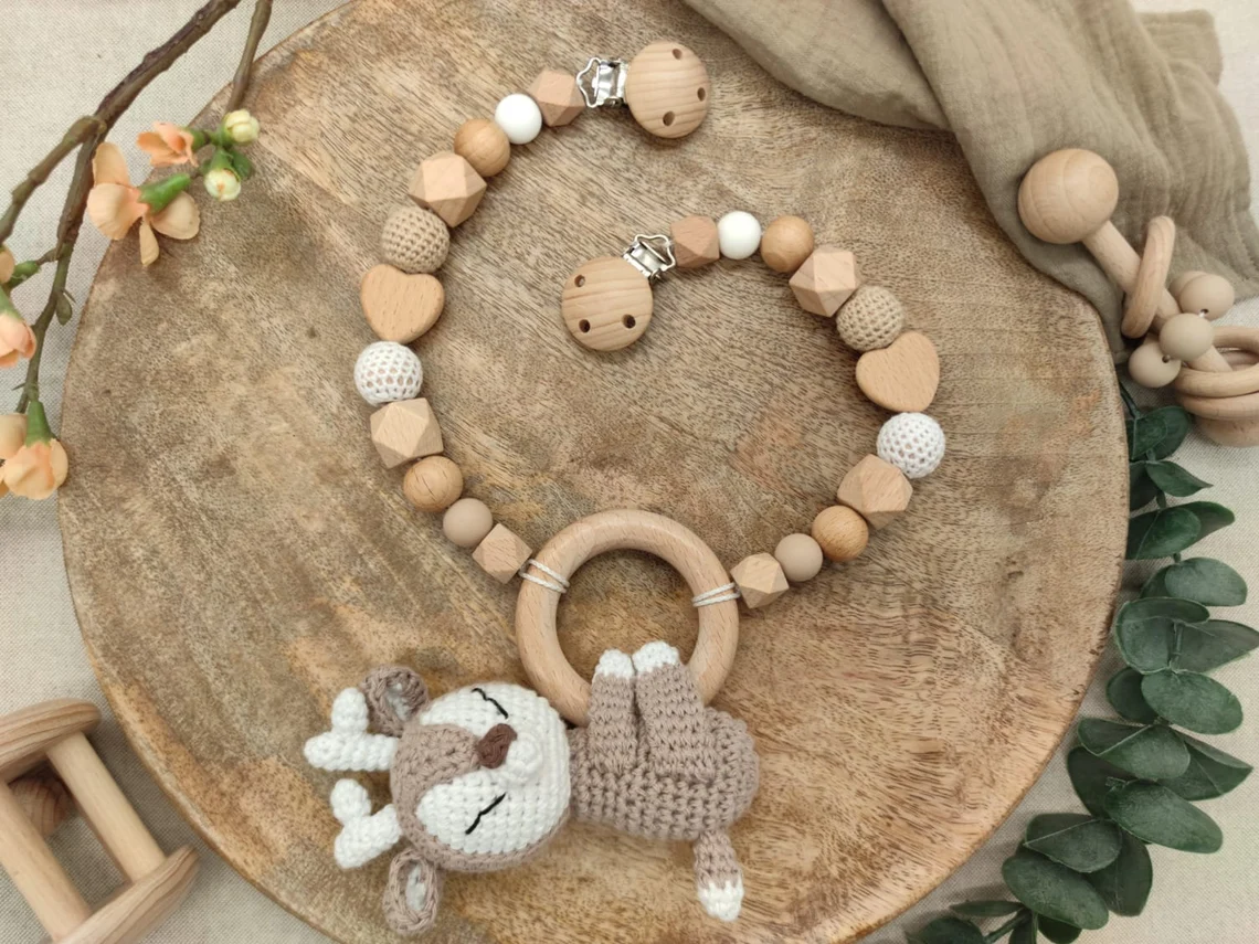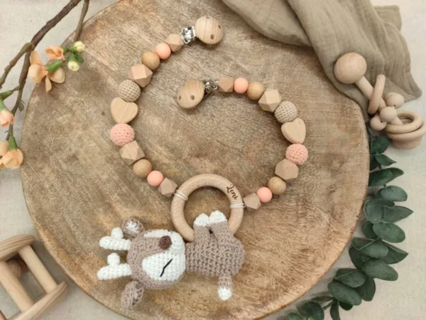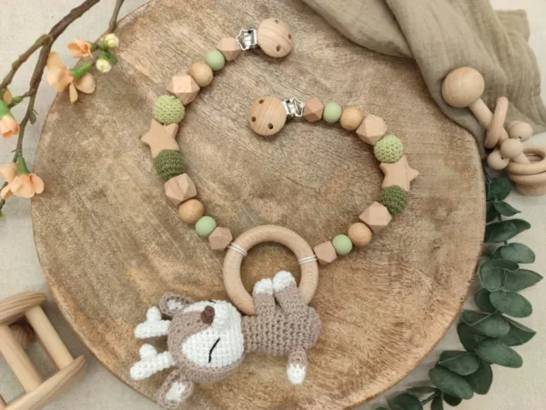 Im Kopf des Rehs ist eine Rassel eingearbeitet.