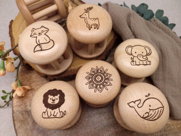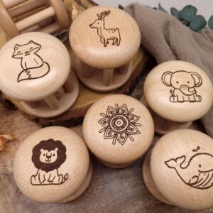 Unsere Rollrasseln laden dein Baby zum Spielen und Interagieren ein.
