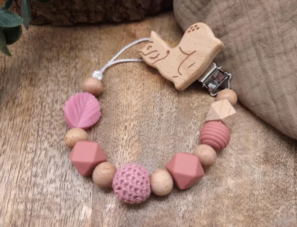 Wunderschöne Schnullerkette mit Blattperle als treuer Helfer und Begleiter deines Babys.